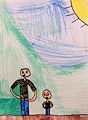 You did great with this drawing. It looks like daddy and Mason. The shirts and jeans match and I like the big sun.
