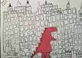 Great red dinosaur or Godzilla! The buildings are amazing! -- Connie