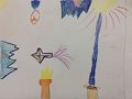 This picture made me immediately happy! I love that you added a bright splash of color - the sun! I would really love to see what colors you come up with for your fantastical trees (may be in the next picture?) - could they be purple? lime-green? neon-pink? Feel free to experiment with colors! The robot on the far left is my favorite.