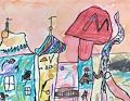 Hi, Finn, I love all of your artwork. This picture looks like a group of buildings. Does that "M" on the tallest building stand for "McDonalds"? Love, Grandma Cheryl