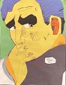 James, ...your artwork is great and seems like you're having fun, too. Your art skills show up all the way back to Grade 2 when you did an eagle and an owl; Grade 3 the perfectly shaped jar filled with butterfly's was especially good at your age. Constellation drawn with Saturn's rings and shape of the Big Dipper stood out. The Agamograph showing good and evil in the same drawing! The chicken using cookie batter on a baking sheet with perfect feet on the chicken. More recently the Zoondoodle was the most colorful with many lines and shapes left me excited and puzzled by the confused designs. What was the message here in this drawing? And I think the overall best artwork was the "Comic" which must be your lastest? I think it is a great facial character, with his hand over his mouth, the colors and various paper cutouts were perfectly shaped, the eyebrows and eyes left me with the impression of facial fear, not comedy. You captured everything in his face, lines in the brow, shape of the nose, the direction of the eyes looking over his shoulder expressing concern. I think instead of "Comic", I would choose "Fear and Apprehension". Over all, your gallery is a wonderful display of your artistic talents; keep up the good work, ...MiMi and BoBo very proud of you!