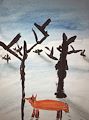 You have told me that you worked hard on this artwork. I can almost feel the cold from the snowy winter landscape. And that red fox is certainly a winter hunter. Gold star for this one!