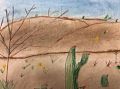 This artwork looks just like the land where you live. I see yellow blooms and little red fruit on the cacti. Very authentic. Nice work.