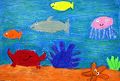 Looks like all the things you see at Tybee especially the jellyfish, Gracie. We need to buy this one for the playroom. You are doing great with your art. Keep up the good work. Nanny & I are so pround of you.