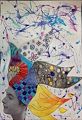 This drawing is a really good composition, and your use of colors is really well balanced. I like the way your markings and color texture help define the spaces within the outlines of the forms.