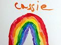 The rainbow is a petty color picture,and it is correct, with the colors in the same order that they appear in a real rainbow with red, orange, yellow, green, blue, then violet. Nice work!
