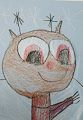 Hi, Evan. Your green monster looks angry and scary. Great job! I love that his hair is standing straight up - very cool! Love you XO