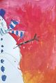 Wow! I Love your snowman placement in this piece. Again color use is imaginative and beautiful.