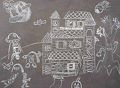 I like this type of art. Chalk appears neon on black backdrop.