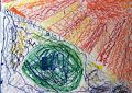 WOW! Interesting colorful art...the sun with rays of sunlight on the planet Earth!