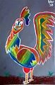 When I was little there was a song called the Funky Chicken. This reminded me of that song! Very handsome rooster, love the colors!