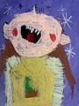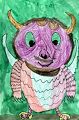 Wow, Kennedy! Is this what a purple people-eater looks like? Haha! Now that is a wise-looking owl who appears to have eaten a very large meal (big, bulging eyes) that reminds me of how I feel after eating a big meal. Great use of colors and such a clear picture. This picture immediately made me laugh. Keep on creating your special works of art...you're ge-r-r-rate! Love you!! Nani