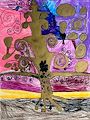 I love the colors in the background and the depth you created at the base of the tree by drawing the roots. Very pretty picture Kennedy!