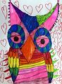 Kennedy, this owl painting is beautiful! So many pretty colors remind me of stained glass. Good job creating a very special owl, kiddo!! Love & big hugs! Nani