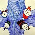 The snowmen look happy and appear to be having fun on a cold, winter's day. Great drawing, Kennedy, and I especially like the color blue you colored the sky. Love you! Nani