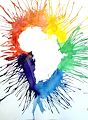 This is so cool! I really like how you guys created a rainbow splatter around the edge to make a bright and more colorful pop! And I also like the different values in the colors.