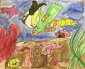 What a beautiful fish Sweetie!!???? You chose such nice bright colors. He reminds me of a rainbow fish. He looks like the 2 goldfish you won at the fair when you were here?????? We love you!