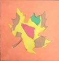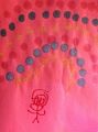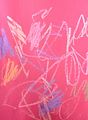 How could I miss commenting on this modern creative art piece...love the pink background with the colors purple and yellow and white contrasting. Nice work!