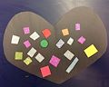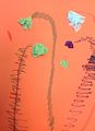 Wow. I really like all those colored dots and the little person drawn at the bottom. It looks like a rainbow of dots! Good work.