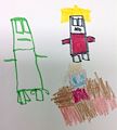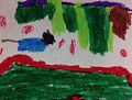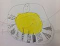 Great job on drawing what looks like a round building with doors and windows. Or maybe this is a well rounded person with the head and face??? Still creative!