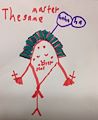 This looks like your three cousins from NC. You did a good job and we are proud of your art work. Keep up the good work and someday, you could be a great artist. Love Pappy H.