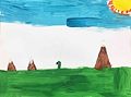 I love the colors you used. The blues and yellows look great. I really like your big sun. Keep up the good work.