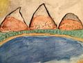 joaquin, this reminds me of the hills in moab. i love the colors and the way you have blended the blues in the water and made each mountain unique. were you thinking of a photograph?oma