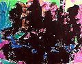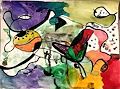 Simon, I like the contrast between the feathery black area on the bottom and the smooth circular red area. It also add interest by not having the pink go all the way around. The rough edge on the gold area also gives your abstract work interest. Keep up the good work, you are learning about many styles of art.