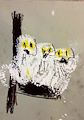 What cute owls! They look hungry and I bet they are making a lot of noise calling their parents for food. What a scary Halloween picture.