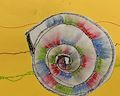 I like the polka dots especially the two in the upper right. I like the spiral and the shading of green and blue. I bet it was difficult to do. Keep up the good work, practice makes perfect. Keep trying hard things.