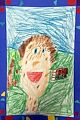 James, I love your self portrait! It makes me want to rub my hand on your hair. It looks so real! Most of all, I like it because you have drawn a picture of the happy person you are.