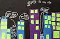 Can you imagine walking down the street and listening to the skyscrapers talking to each other? Wouldn't it be fun to live in the tall purple apartment?!