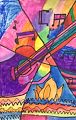Wow, Andrew, another exciting piece of art! The colors are vibrant. I like the guitar and musical notes. Love, Grandma
