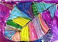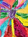 It is a beautiful painting of a rainbow flower. I love the soft colors you use. Keep on doing beautiful work in art class, Andrew! Love, Grandma
