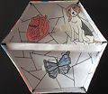 Michaela has always had a passion for art . It is a way of expressing herself . This particular piece Symbolizes the 3 things close to her and passionate about. The love for animals. Having that passion for caring and nurturing comes natural for her . As a little girl we would often visit butterfly gardens . The butterflies would always grab Michaela’s attention . She would attract them in a way as if she could communicate with them . Quite amazing !!!