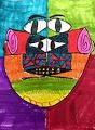 Intriguing artwork! I see a family shield with a pair of eyes below another pair of eyes which appear to be reacting to the first ones. I’m sure a complex meaning is expressed here!