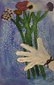Hi Ruby, I really like your colorful bouquet of flowers. The blue background and green stems really make the hand stand out. The bracelet is a nice addition as well. Love, Grandma