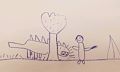 Looks like the monster is trying to hide behind the tree from the little girl with the purple crayon. Good job Lilly!