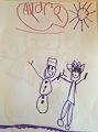 I love this picture of you and your snow lady! She has a great hat and a wonderful smile just like you! Very nice drawing! It makes me so happy! ??