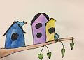 Grandpa and I both love this picture that you made with the wonderful bird houses and the beautiful birds! The colors are so nice and the birds are so cute! You do great work and we are so proud of you! Fantastic picture! ??