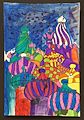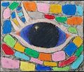 This feels like the eye of a lizard looking at me with the use of color scales surrounding the eye and the three eyelashes making it feel reptilian. The use of color is quite balanced which makes the entire piece more interesting. The highlight in the eye appears to be more than light - it could be an object in space casting its' brightness back onto the person looking at the piece. Very nicely done and definitely worthy of framing with a colored mat and simple black or deep blue frame.