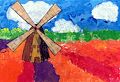 What a great use of colors. I see the sun rising over the water. Love you Grandma