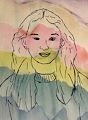 Ella, we absolutely love your self portrait artwork. The colors you chose are perfect and it has the beautiful smile you always have when we see you. The likeness you achived remarkable. Just beautiful.