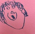 I can really see how hard you are working on writing your name, it is very easy to read. The eyes peaking out at the bottom of your picture is super cute. Love love love this picture.