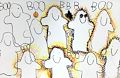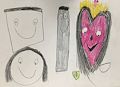 Nice use of colors and shapes! Some of the faces look happy and some look sad and some look spooky!