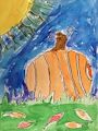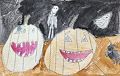 Nice job on your night time pumpkin, it reminds me of seeing pumpkins in the dark at the zoo, do you remember doing that? The leaves are cool how they are different shapes and colors of green. And the stars are shining so brightly, even the moon is out!