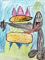 Wow! So creative buddy! You'll have to tell me the story behind it. I think it's a monster or dinosaur hamburger?