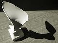 I love the contrast between the dark sharp outline and the soft gradations of color of what I take to be a sunrise sky. The dark shape could either be a desert plant or it might be the paw of a monster who is warming his paw in the sunlight and the rising sun