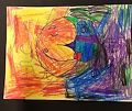 Your art work is a great study of opposites! You show light and dark, night and day, warm colors and cool colors, pointy (the moon part) and rounded (the sun part), open (the moon’s eye) and shut (the sun’s eye). I’ll bet it took a while to color it all in! Nicely done!