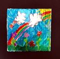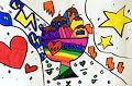 Happy Valentine’s Day! Love the hearts on top of the colorful work! Love,Boots